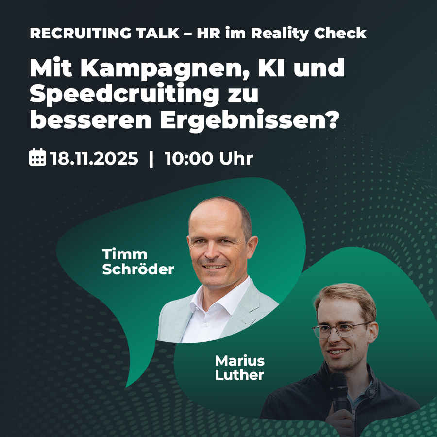 In unserem nächsten Recruiting Talk sprechen wir mit Marius Luther. Als CEO und Gründer von HeyJobs bringt er langjährige Erfahrung im Bereich datengetriebenes Recruiting und den Einsatz von KI zur Optimierung von Stellenanzeigen mit. Marius teilt nicht nur die Perspektive eines Tech-Unternehmers mit uns, sondern gibt auch spannende Einblicke in die Herausforderungen, die Recruiter*innen heute wirklich beschäftigen.